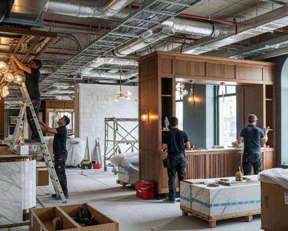 Our in-house capabilities range from demolition and structural modifications to MEP (mechanical, electrical, plumbing) installations and interior finishes. This span of control maintains project deadlines and budget requirements. Our use of high-quality materials and modern practices ensures superior craftsmanship.